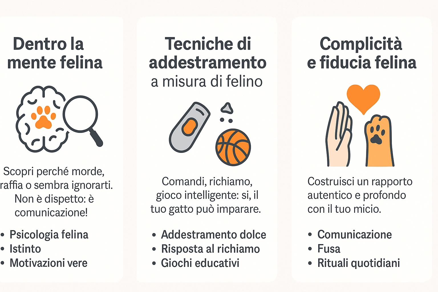 A differenza di altre soluzioni, il nostro pacchetto ti fornisce una visione completa e immediatamente applicabile nella vita con un gatto.